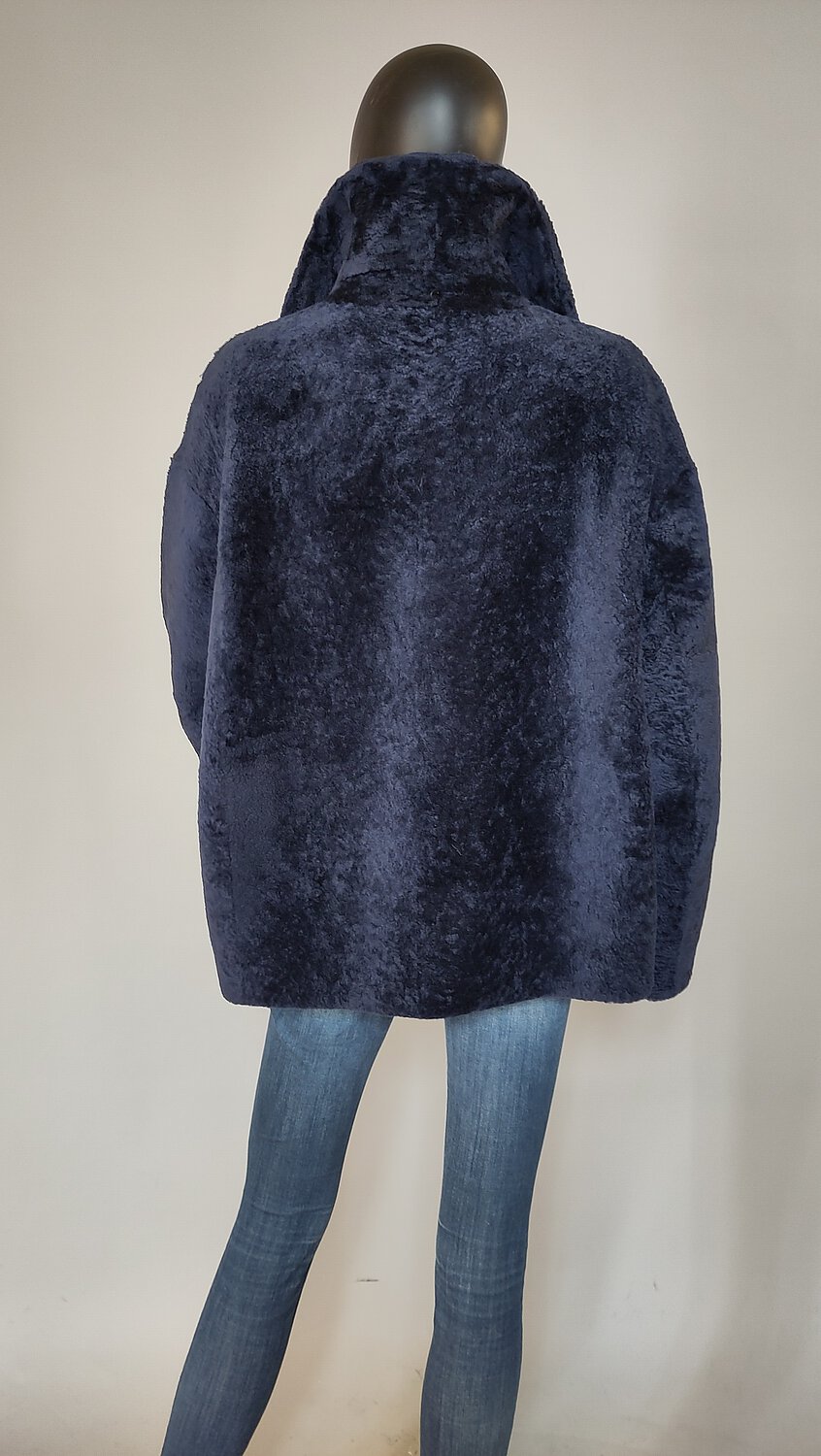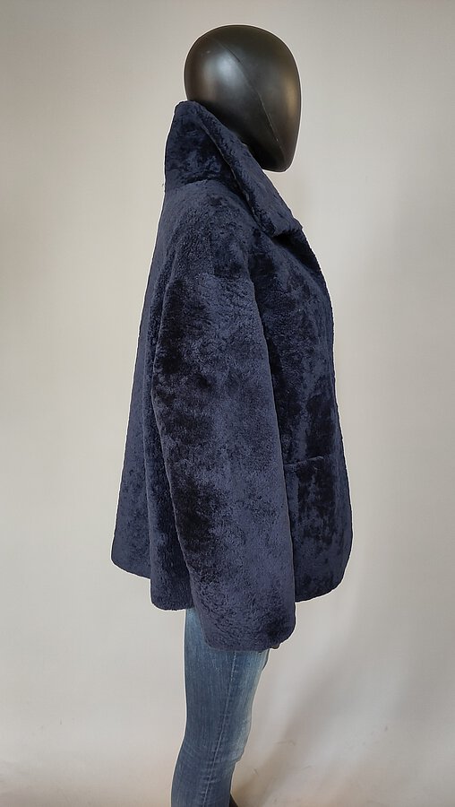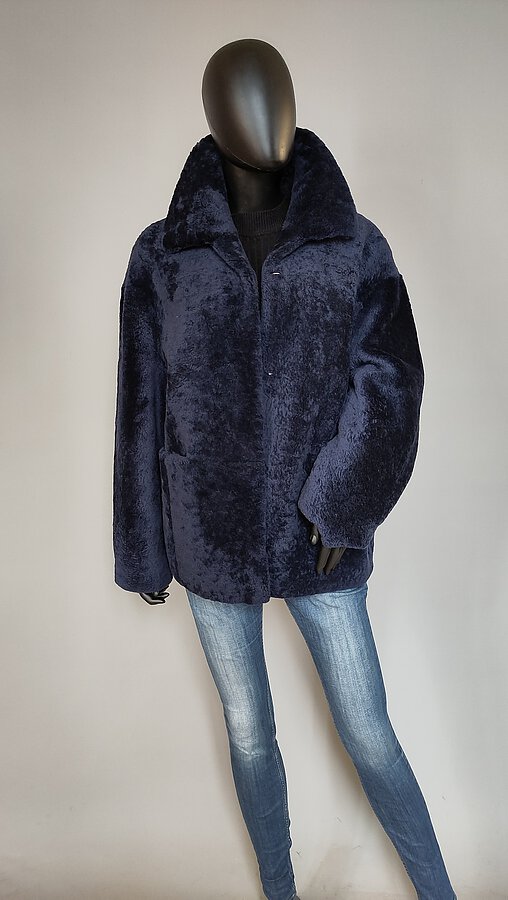 Blaue Jacke aus geschorenem Lammfell