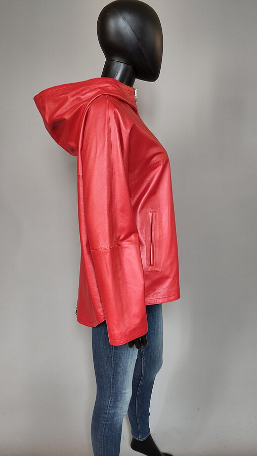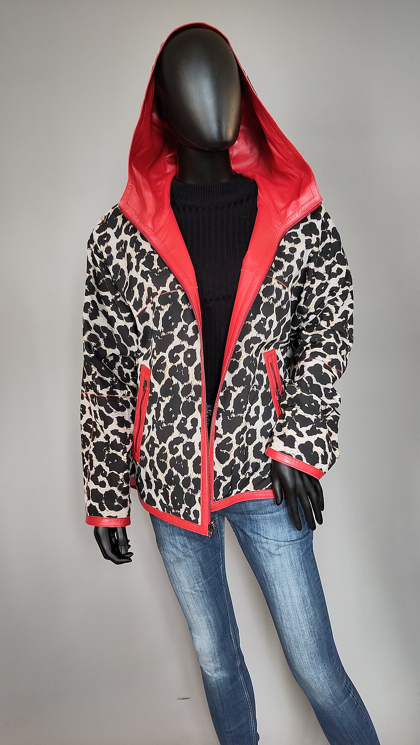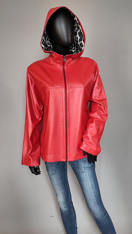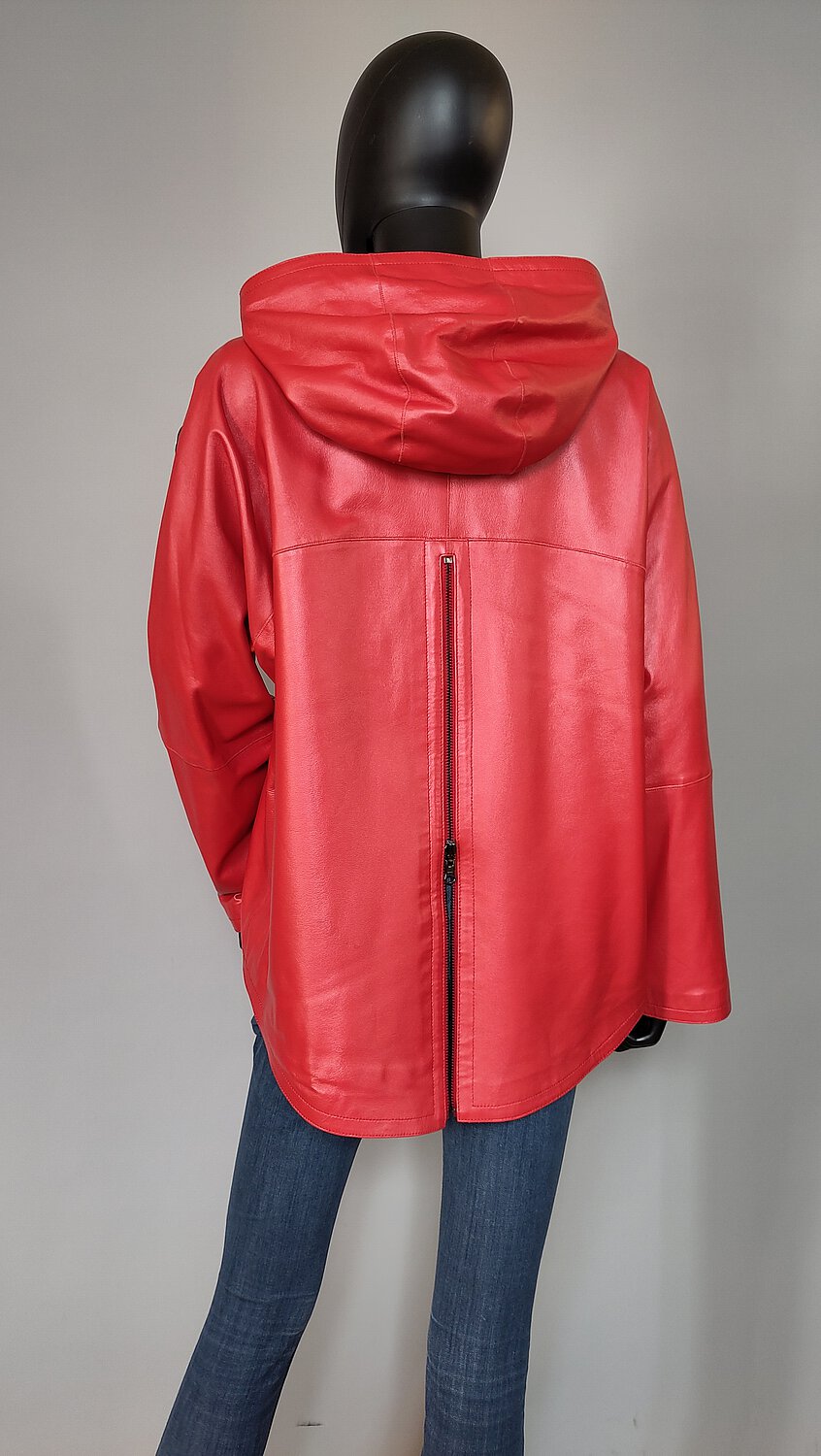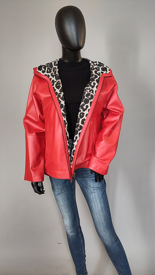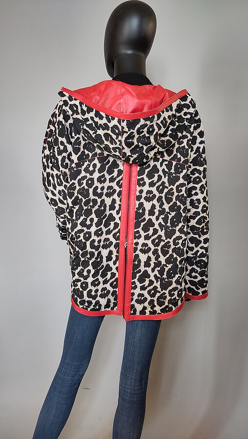 Kapuzen - Wendejacke aus Lammnappa und Stoff mit Reißverschlußschlitz im Rücken