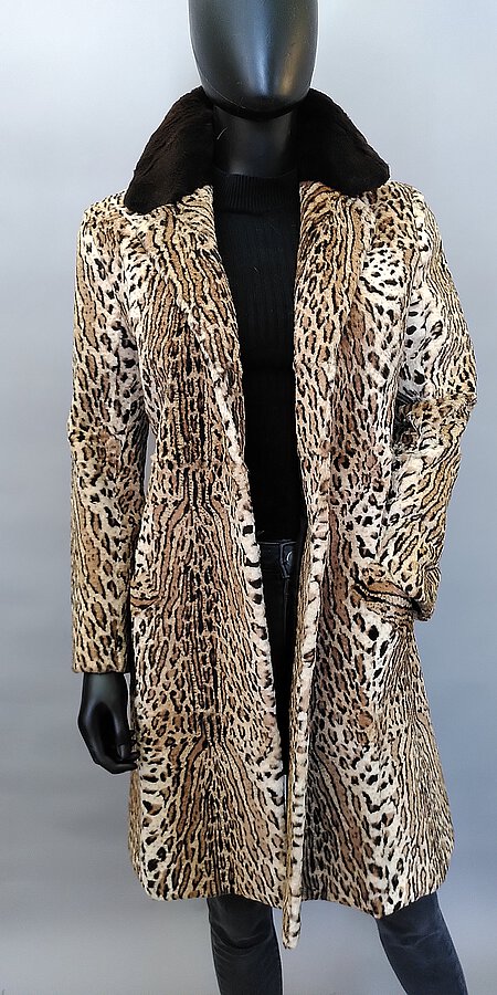 Taillierter Kurzmantel aus geschorenem, bedrucktem Kanin