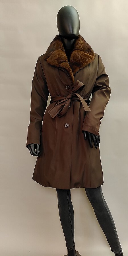 Stoffmantel mit ausköpfbarem Kragen aus Nerz sowie Futter aus geschorenem Kanin