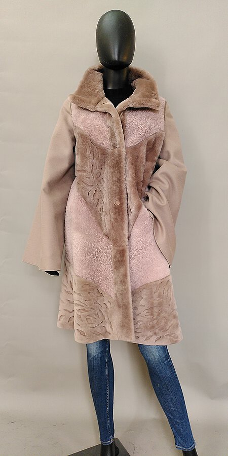 Lammfell und edelster Kaschmir als Wendemantel vereint in der Farbe rosenholz