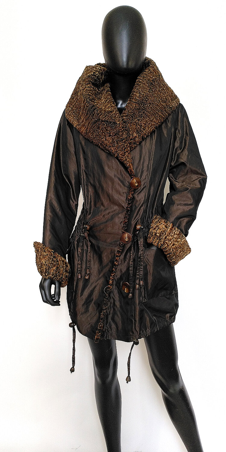 Edelparka aus leichtem Crashstoff besetzt mit bicolor gefärbtem Persianer