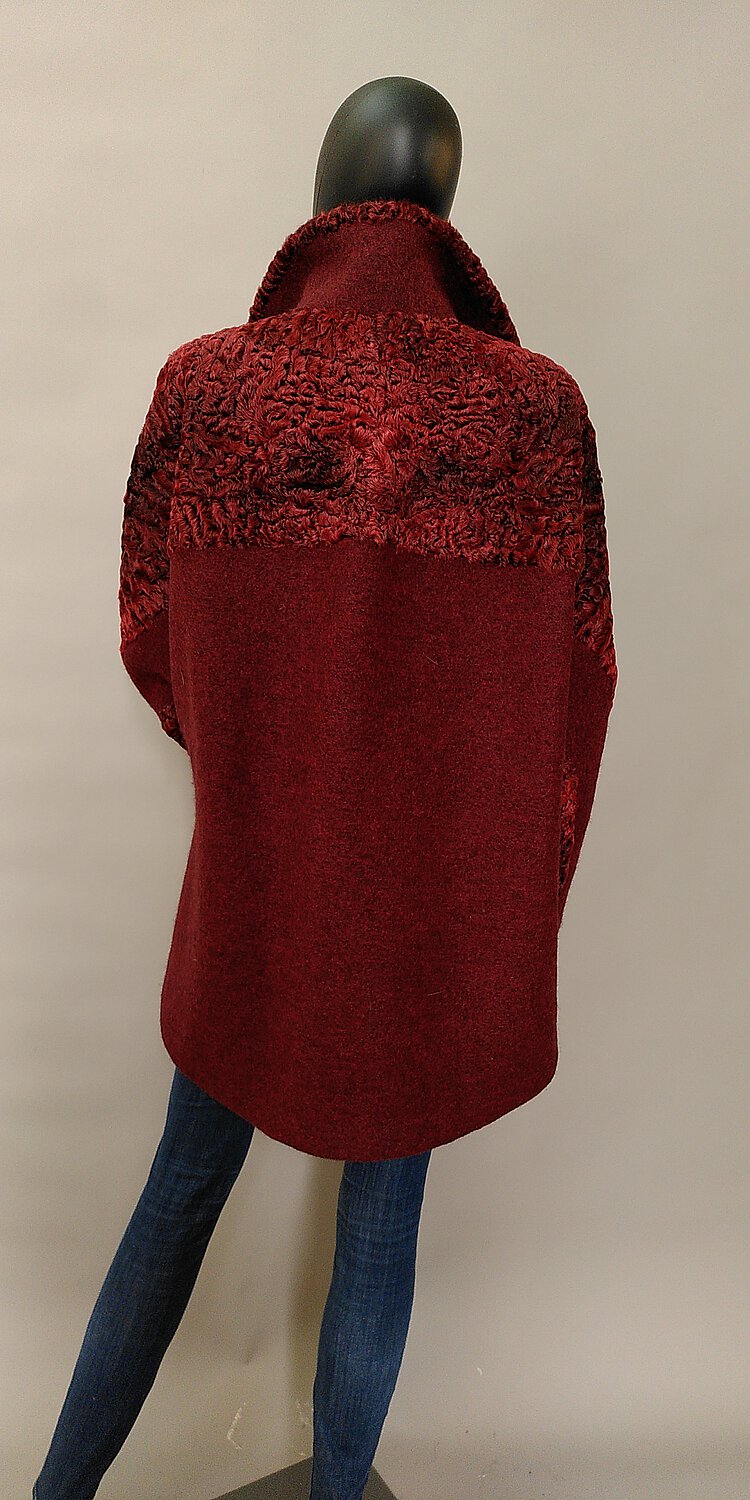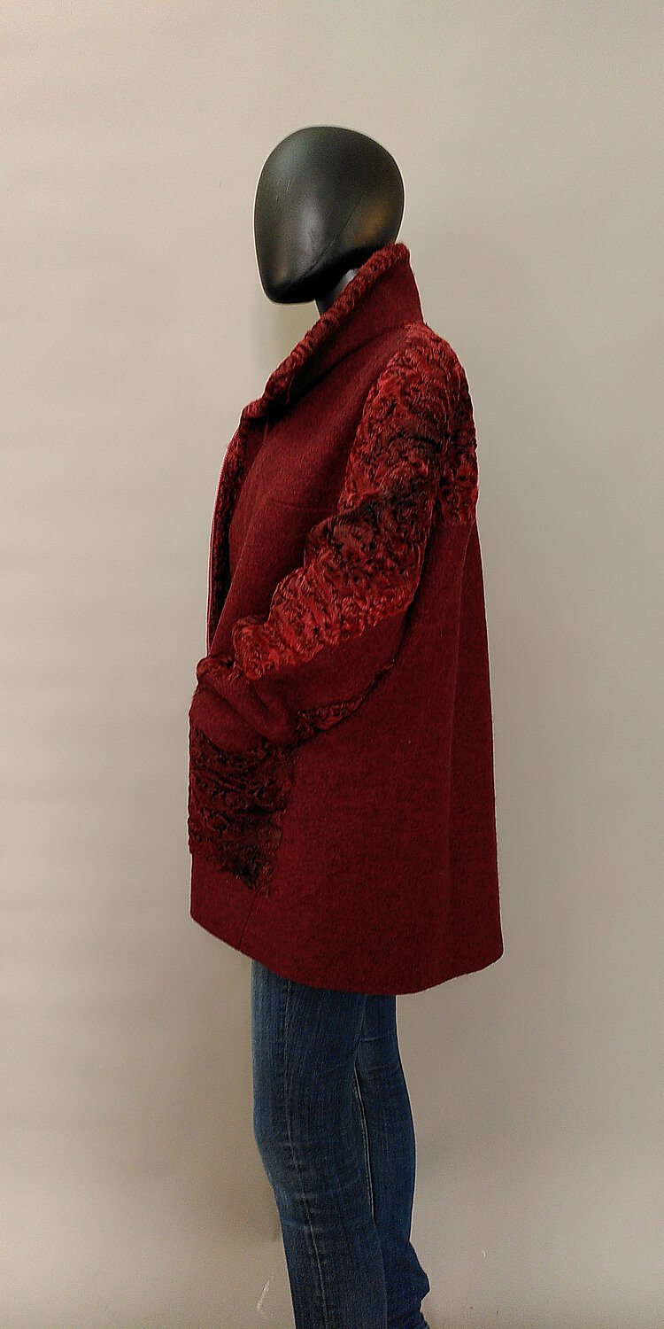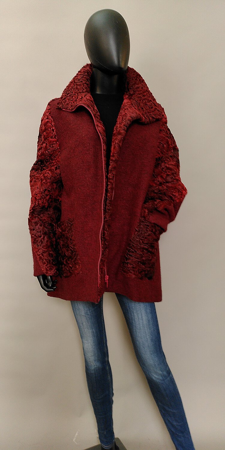 Grauer Persianer wurde rot gefärbt und mit rotem Walkstoff verarbeitet.
