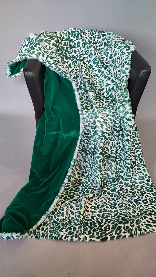 Zickeldecke mit grünem Leodruck abgefüttert mit weichem Baumwollsamt