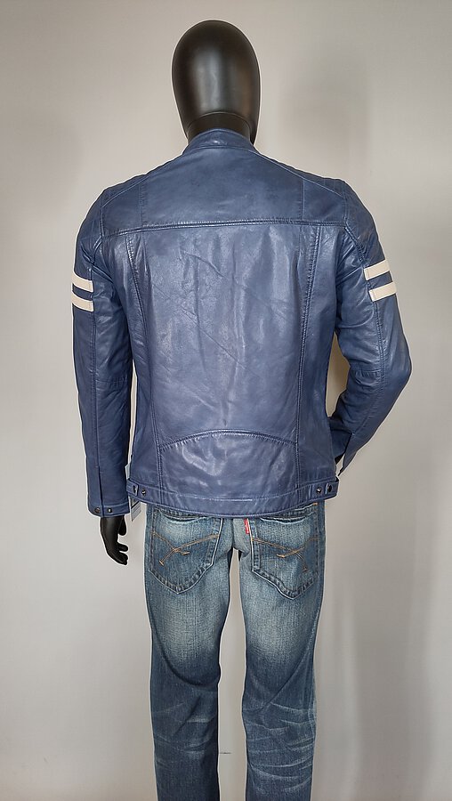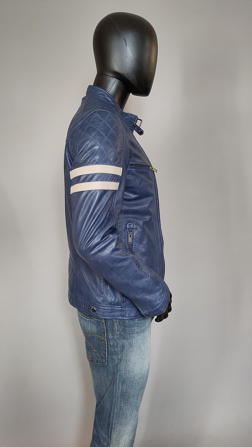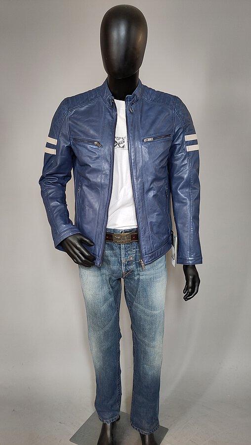 Blaue Bikerjacke aus weichem Lammnappa